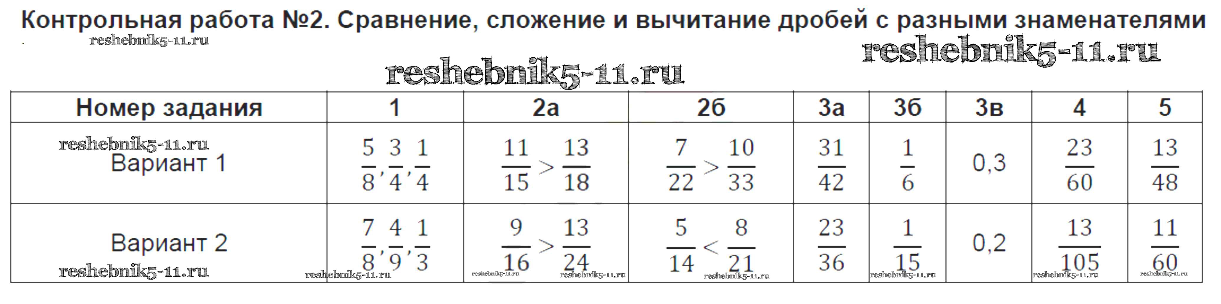 Готовая домашняя работа с ответами по Математике за 6 класс Глазков, Ахременкова, Гаиашвили Контрольно-измерительные материалы (КИМ) Экзамен 2014 ФГОС - Контрольные работы 2