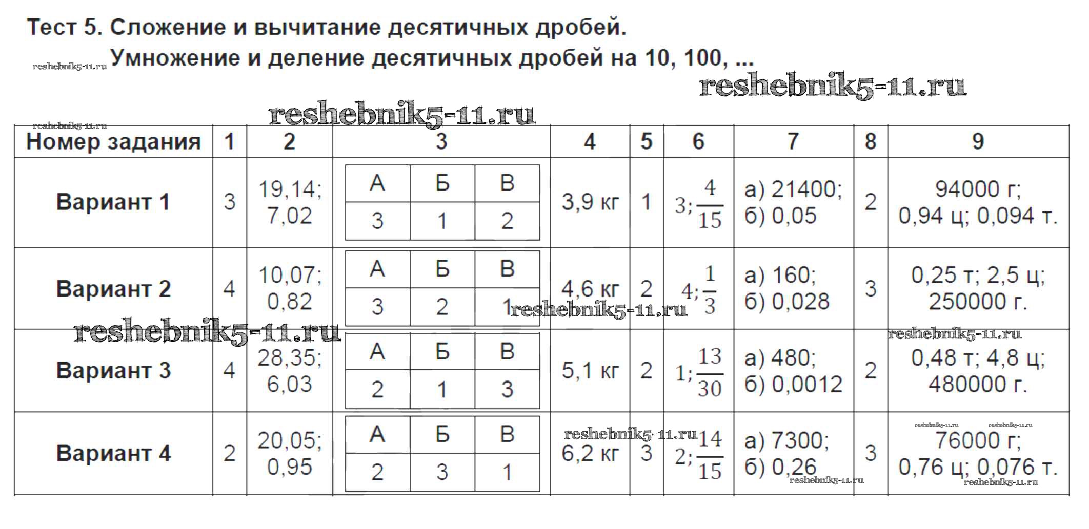 Готовая домашняя работа с ответами по Математике за 6 класс Кузнецова, Минаева, Рослова, Суворова Тематические тесты Просвещение 2018 ФГОС - Тесты 5