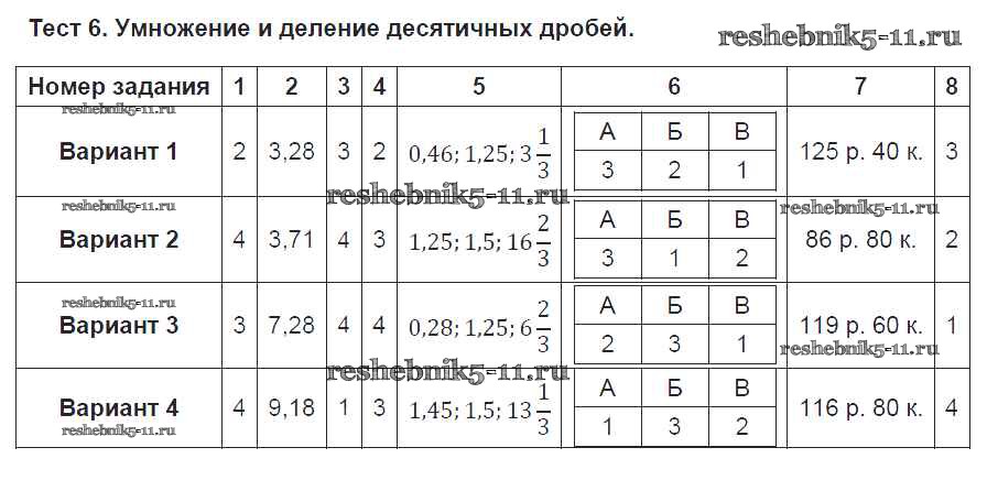 Математика за 6 класс Кузнецова Тематические тесты Просвещение тест 6