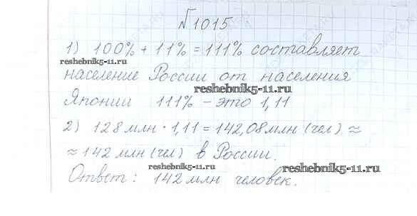 Готовая домашняя работа с ответами по Математике за 6 класс Дорофеев, Шарыгин, Суворова Учебник Академический школьный учебник Просвещение 2014 ФГОС - Упражнения 1015