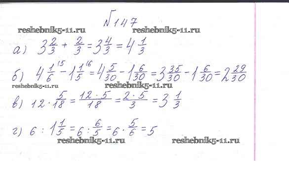 Готовая домашняя работа с ответами по Математике за 6 класс Дорофеев, Шарыгин, Суворова Учебник Академический школьный учебник Просвещение 2014 ФГОС - Упражнения 147