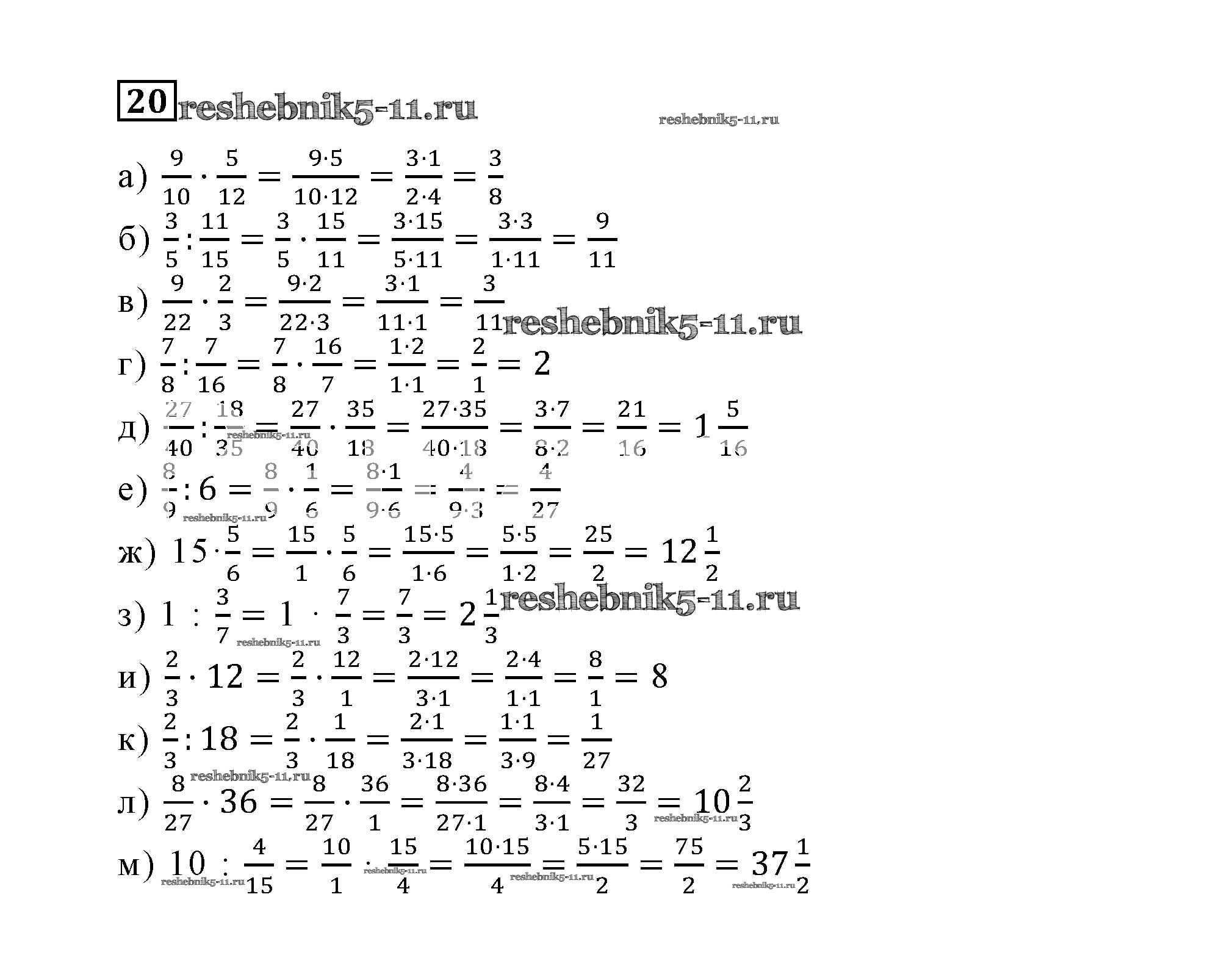 Готовая домашняя работа с ответами по Математике за 6 класс Дорофеев, Шарыгин, Суворова Учебник Академический школьный учебник Просвещение 2014 ФГОС - Упражнения 20