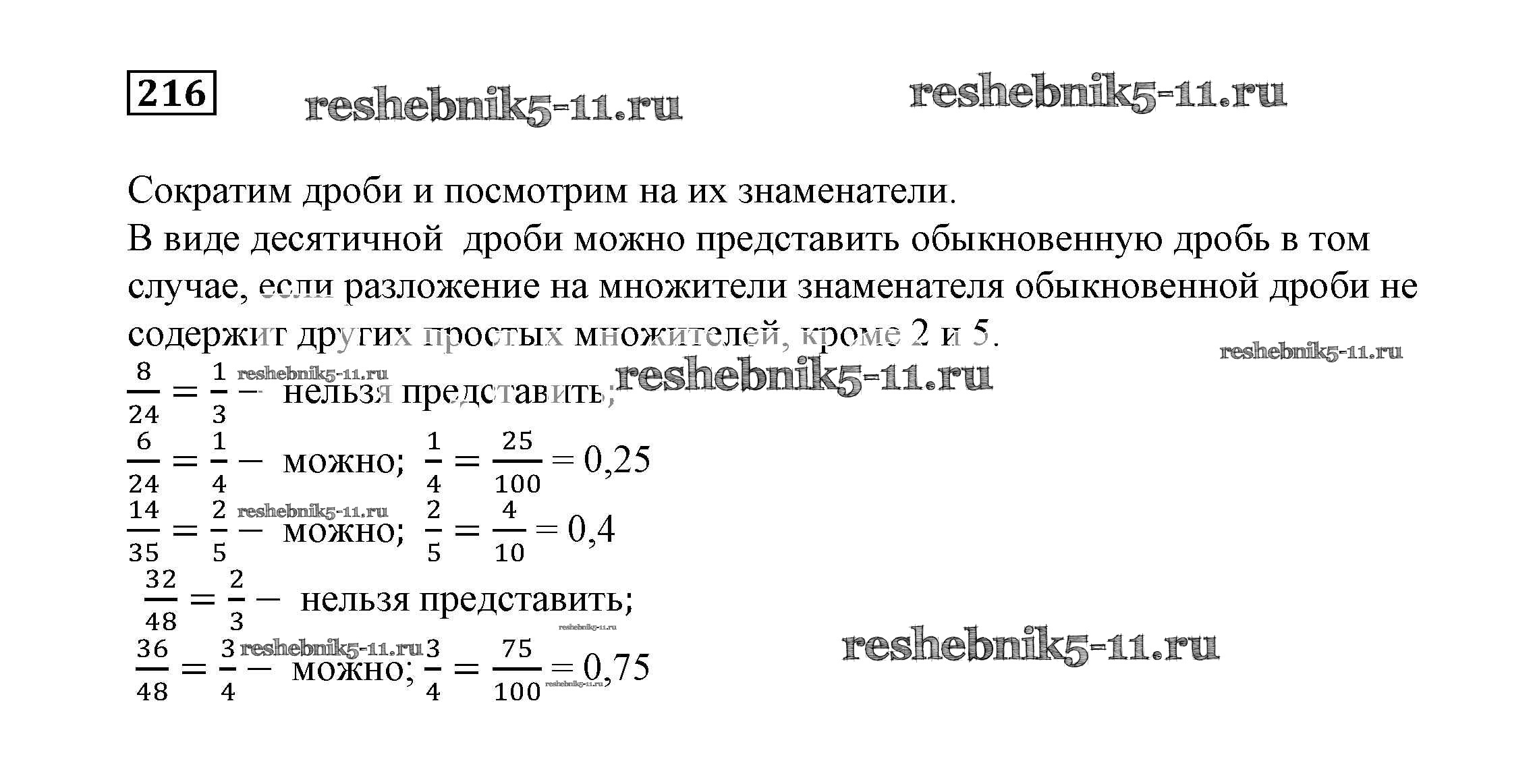Готовая домашняя работа с ответами по Математике за 6 класс Дорофеев, Шарыгин, Суворова Учебник Академический школьный учебник Просвещение 2014 ФГОС - Упражнения 216