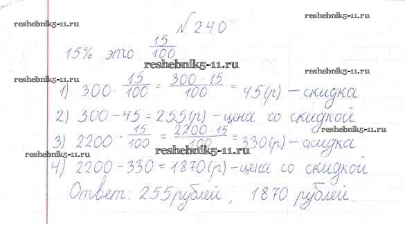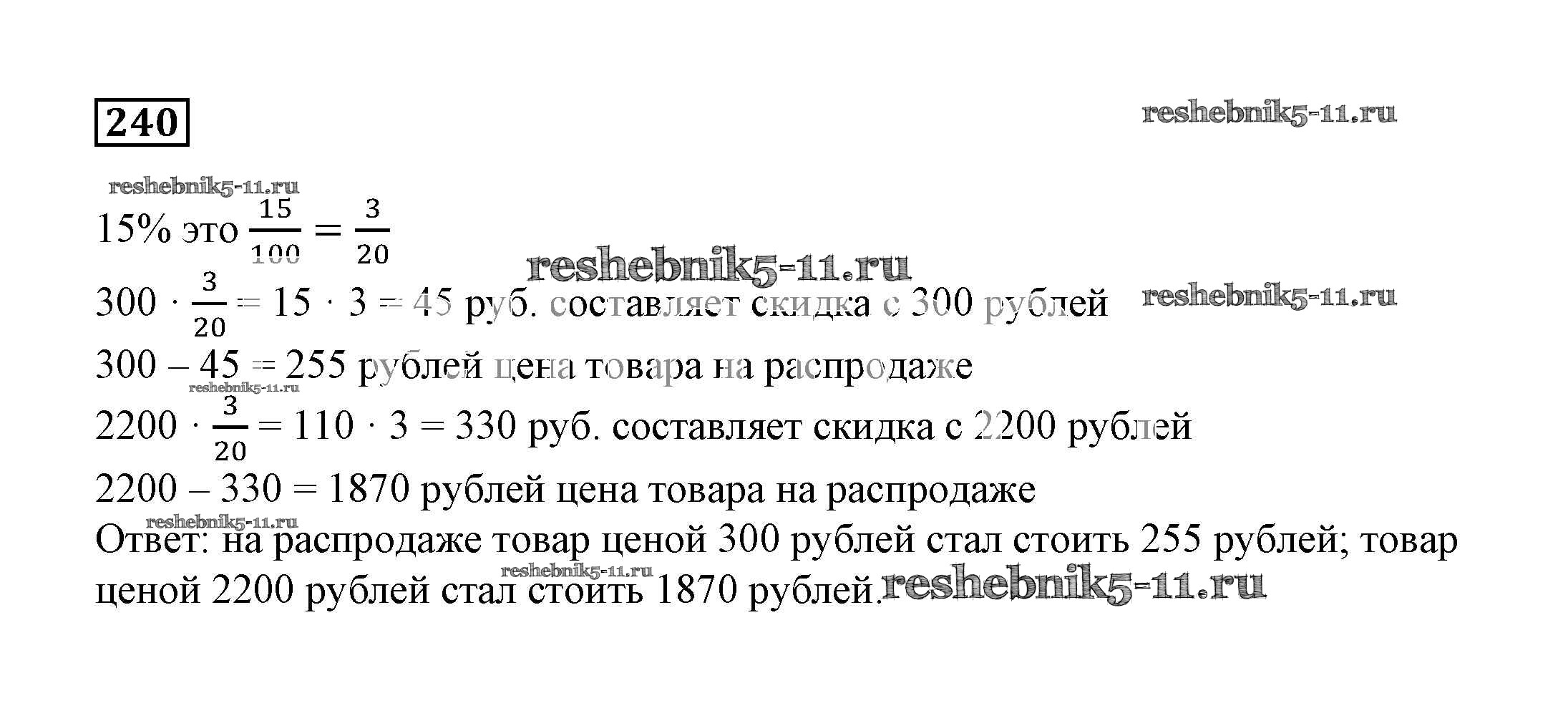 Готовая домашняя работа с ответами по Математике за 6 класс Дорофеев, Шарыгин, Суворова Учебник Академический школьный учебник Просвещение 2014 ФГОС - Упражнения 240
