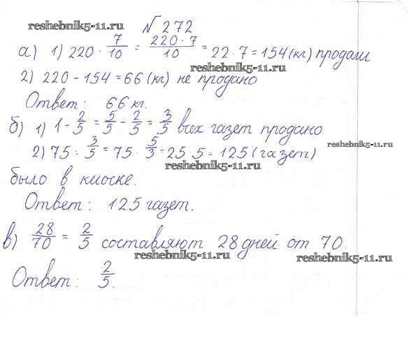 Готовая домашняя работа с ответами по Математике за 6 класс Дорофеев, Шарыгин, Суворова Учебник Академический школьный учебник Просвещение 2014 ФГОС - Упражнения 272