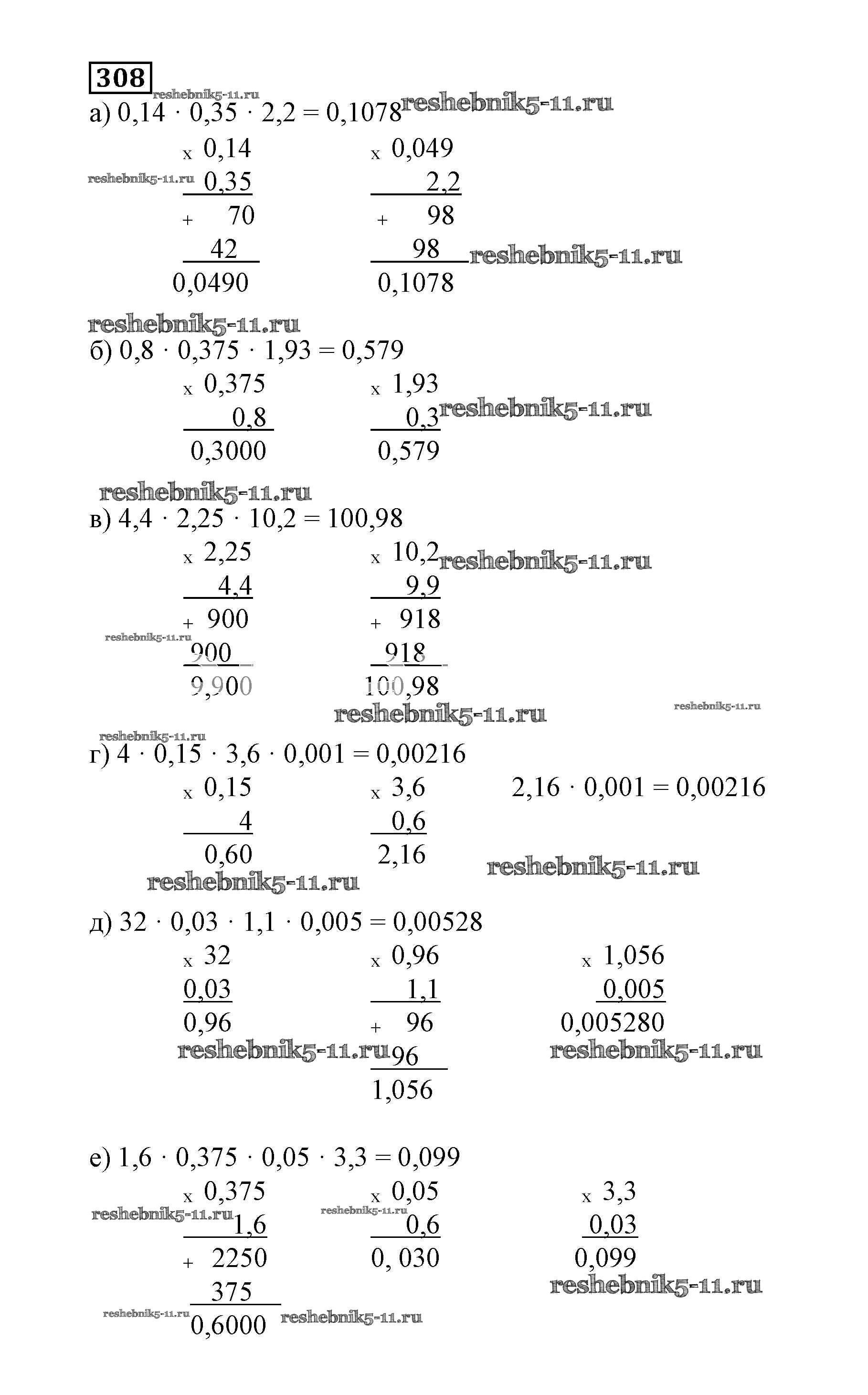 Готовая домашняя работа с ответами по Математике за 6 класс Дорофеев, Шарыгин, Суворова Учебник Академический школьный учебник Просвещение 2014 ФГОС - Упражнения 308
