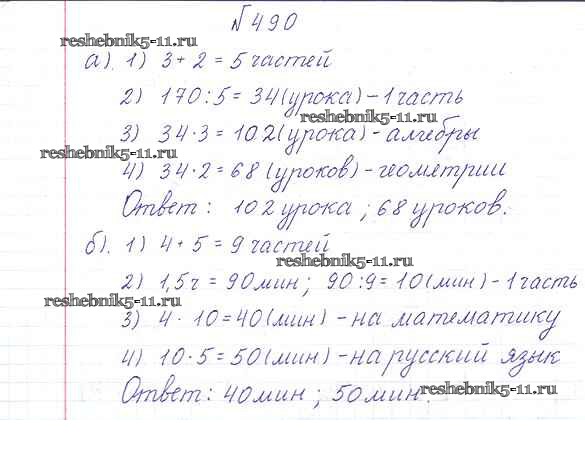 Готовая домашняя работа с ответами по Математике за 6 класс Дорофеев, Шарыгин, Суворова Учебник Академический школьный учебник Просвещение 2014 ФГОС - Упражнения 490