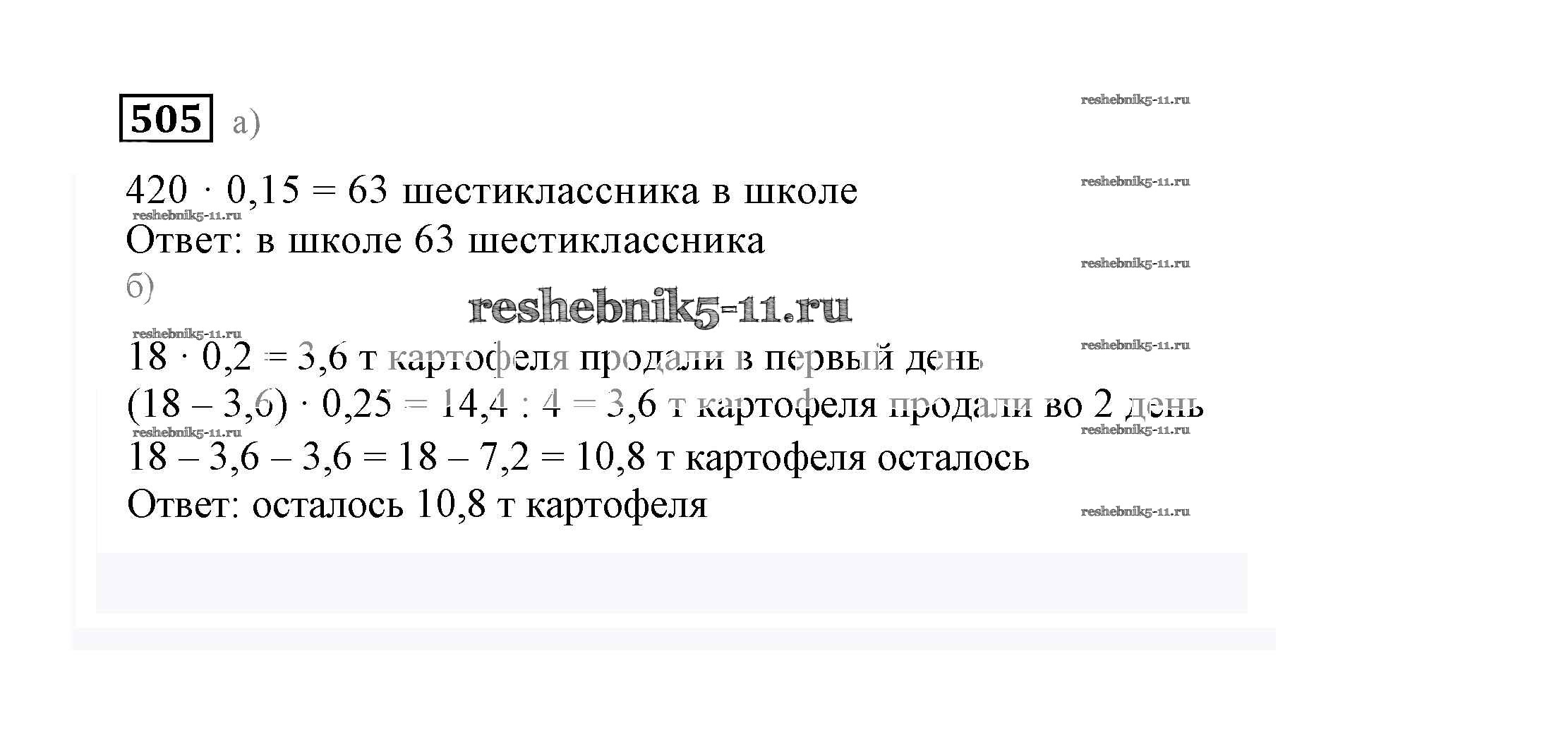 Готовая домашняя работа с ответами по Математике за 6 класс Дорофеев, Шарыгин, Суворова Учебник Академический школьный учебник Просвещение 2014 ФГОС - Упражнения 505