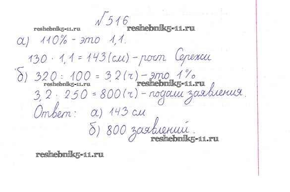 Готовая домашняя работа с ответами по Математике за 6 класс Дорофеев, Шарыгин, Суворова Учебник Академический школьный учебник Просвещение 2014 ФГОС - Упражнения 516