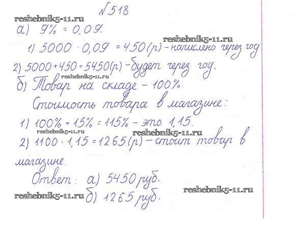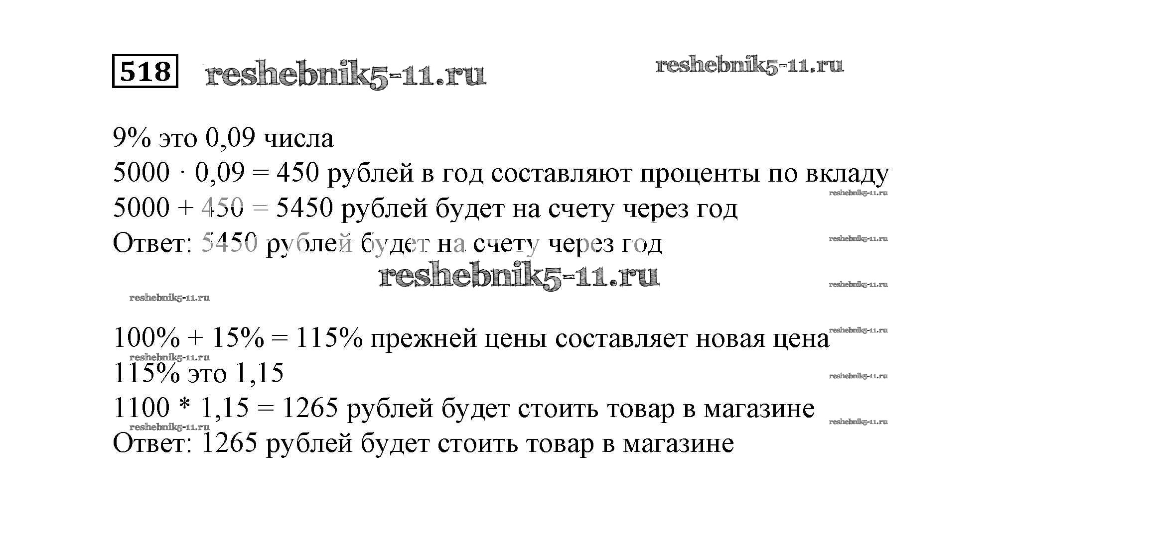 Готовая домашняя работа с ответами по Математике за 6 класс Дорофеев, Шарыгин, Суворова Учебник Академический школьный учебник Просвещение 2014 ФГОС - Упражнения 518