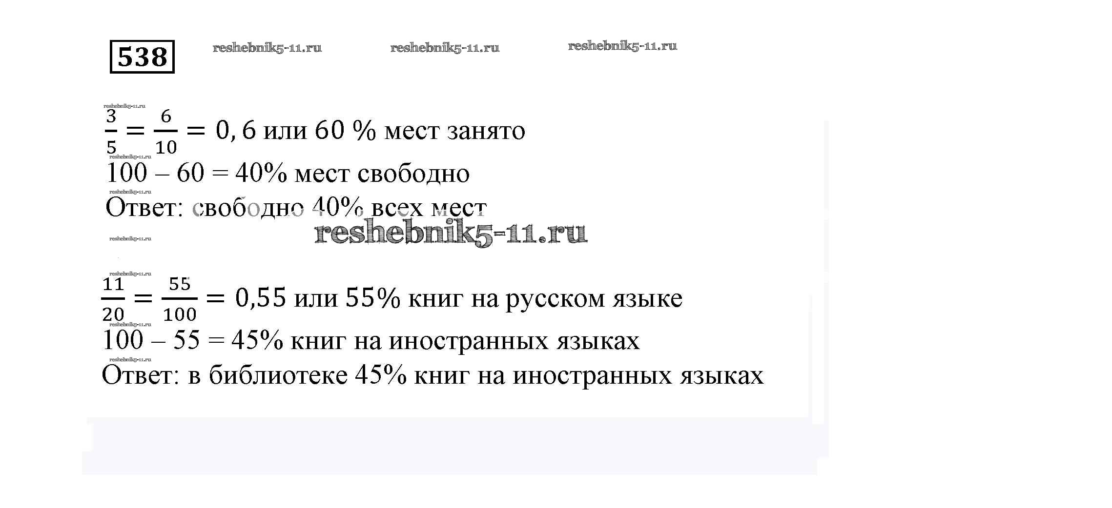 Готовая домашняя работа с ответами по Математике за 6 класс Дорофеев, Шарыгин, Суворова Учебник Академический школьный учебник Просвещение 2014 ФГОС - Упражнения 538