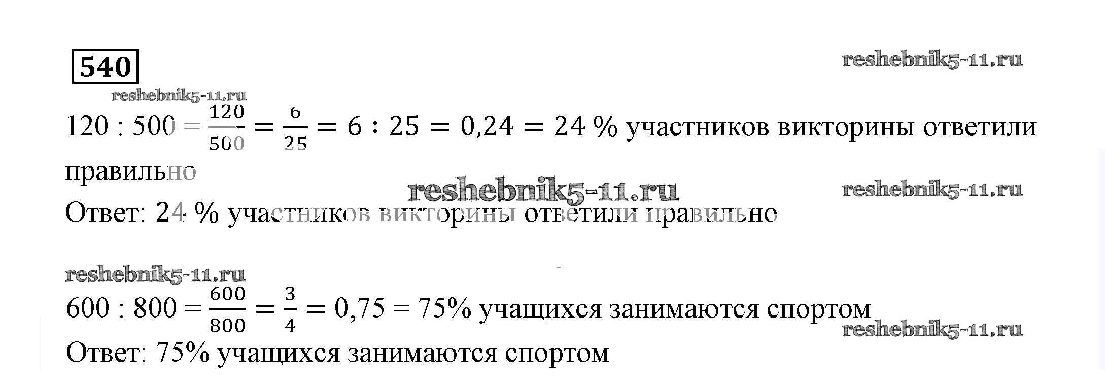 Готовая домашняя работа с ответами по Математике за 6 класс Дорофеев, Шарыгин, Суворова Учебник Академический школьный учебник Просвещение 2014 ФГОС - Упражнения 540