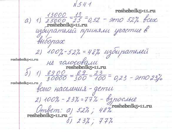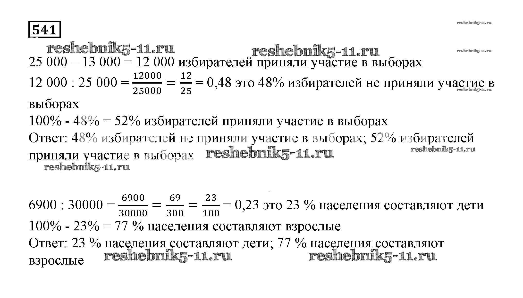 Готовая домашняя работа с ответами по Математике за 6 класс Дорофеев, Шарыгин, Суворова Учебник Академический школьный учебник Просвещение 2014 ФГОС - Упражнения 541