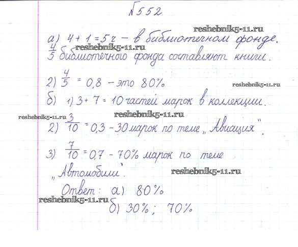 Готовая домашняя работа с ответами по Математике за 6 класс Дорофеев, Шарыгин, Суворова Учебник Академический школьный учебник Просвещение 2014 ФГОС - Упражнения 552