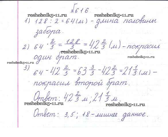 Готовая домашняя работа с ответами по Математике за 6 класс Дорофеев, Шарыгин, Суворова Учебник Академический школьный учебник Просвещение 2014 ФГОС - Упражнения 616