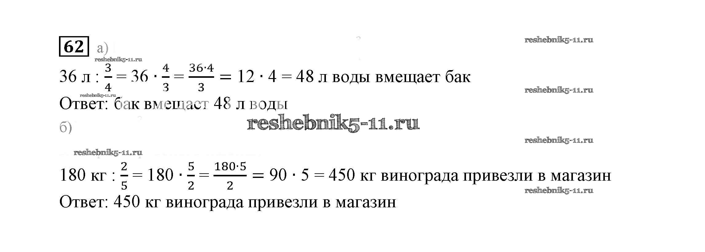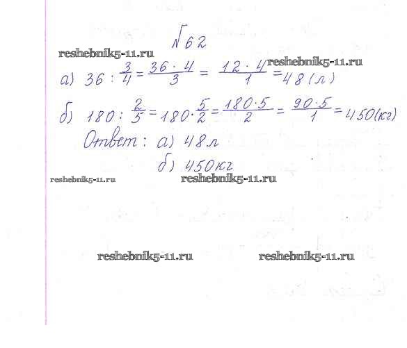 Готовая домашняя работа с ответами по Математике за 6 класс Дорофеев, Шарыгин, Суворова Учебник Академический школьный учебник Просвещение 2014 ФГОС - Упражнения 62