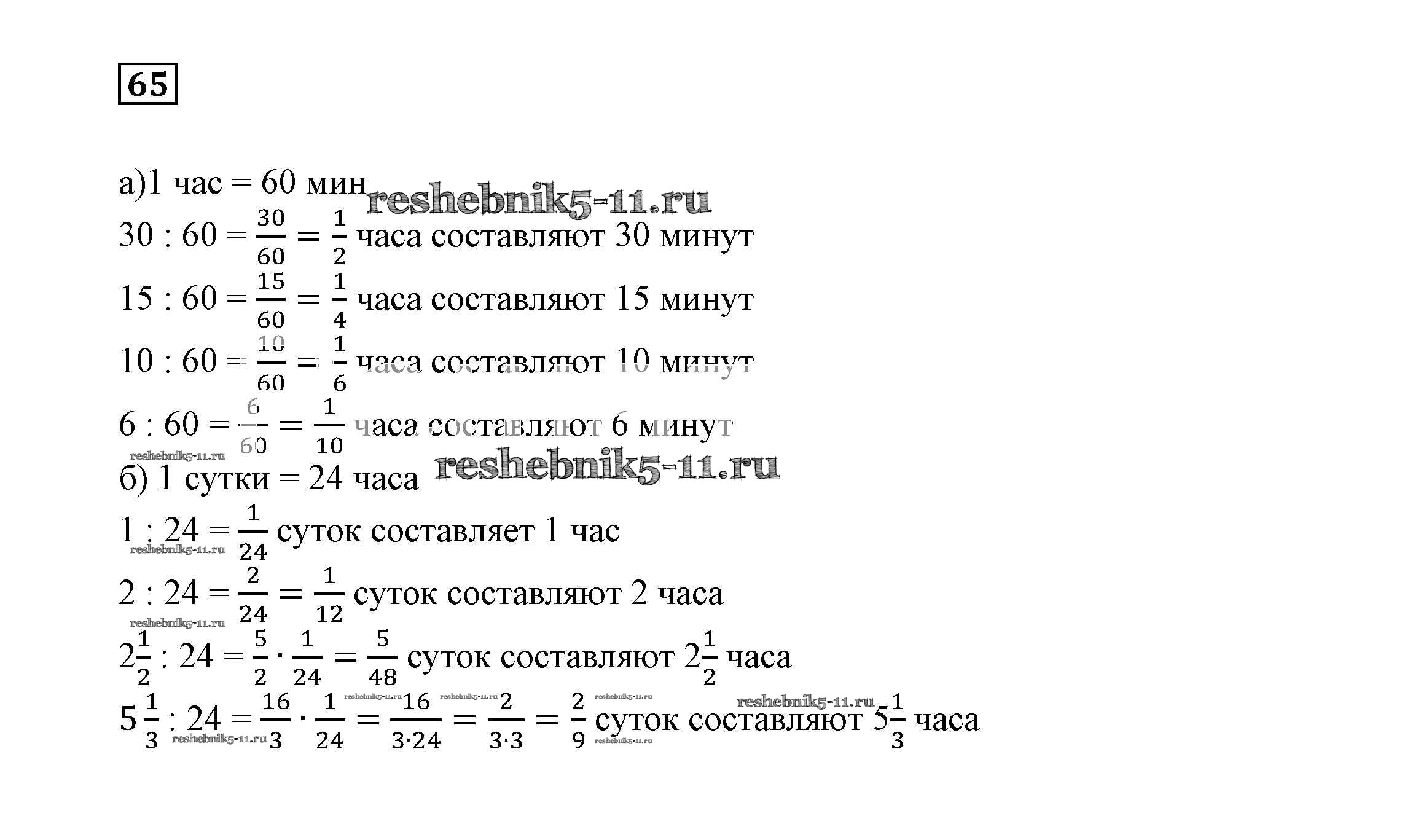 Готовая домашняя работа с ответами по Математике за 6 класс Дорофеев, Шарыгин, Суворова Учебник Академический школьный учебник Просвещение 2014 ФГОС - Упражнения 65
