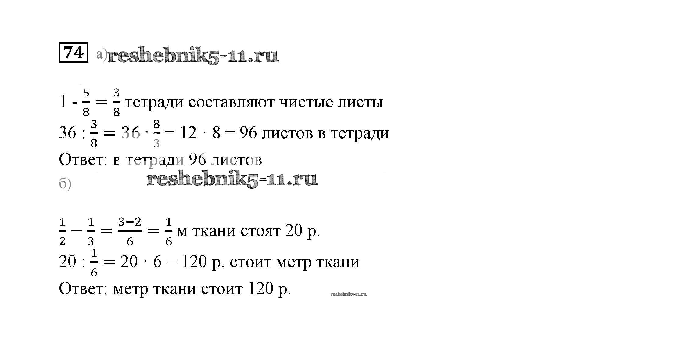 Готовая домашняя работа с ответами по Математике за 6 класс Дорофеев, Шарыгин, Суворова Учебник Академический школьный учебник Просвещение 2014 ФГОС - Упражнения 74