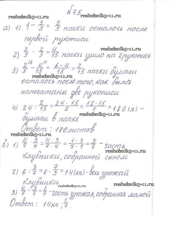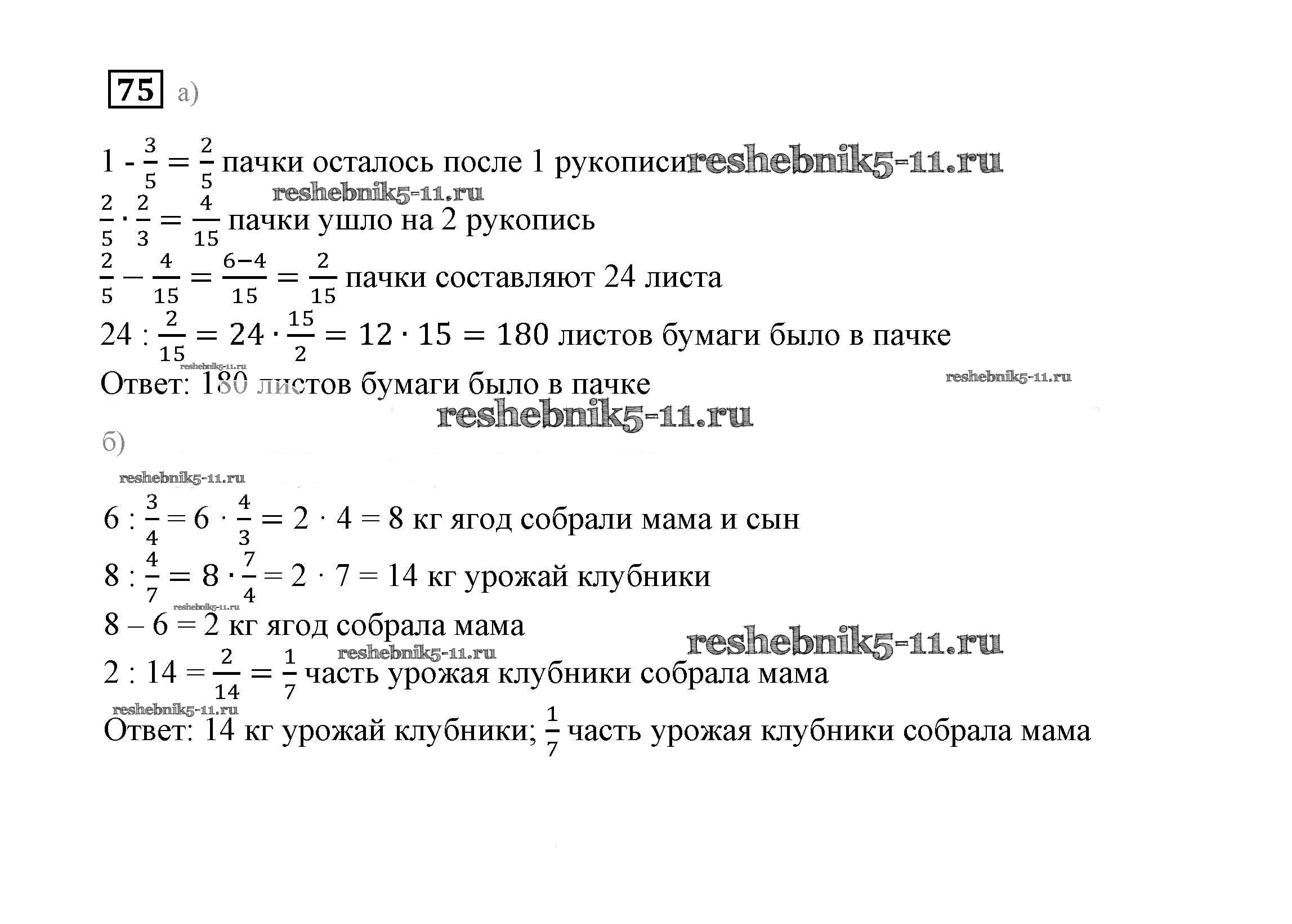 Готовая домашняя работа с ответами по Математике за 6 класс Дорофеев, Шарыгин, Суворова Учебник Академический школьный учебник Просвещение 2014 ФГОС - Упражнения 75