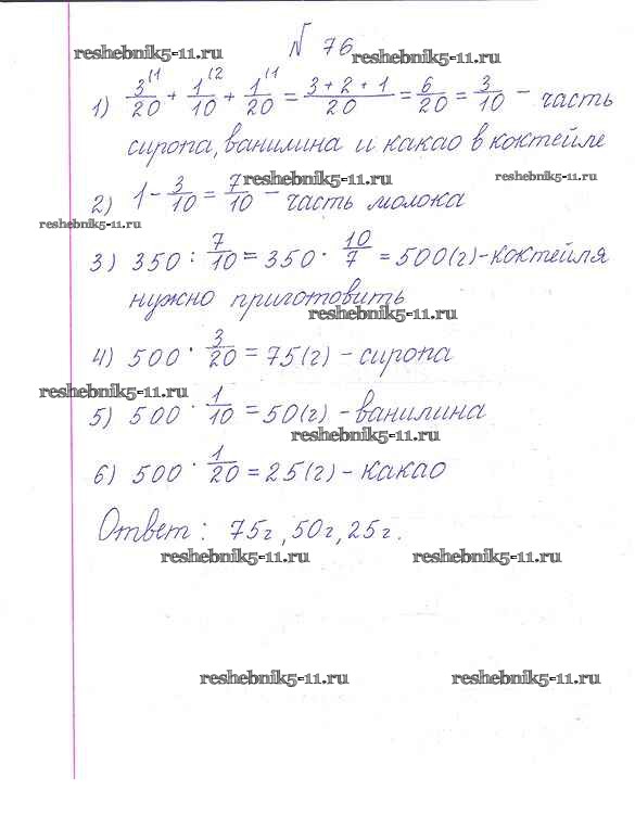 Готовая домашняя работа с ответами по Математике за 6 класс Дорофеев, Шарыгин, Суворова Учебник Академический школьный учебник Просвещение 2014 ФГОС - Упражнения 76