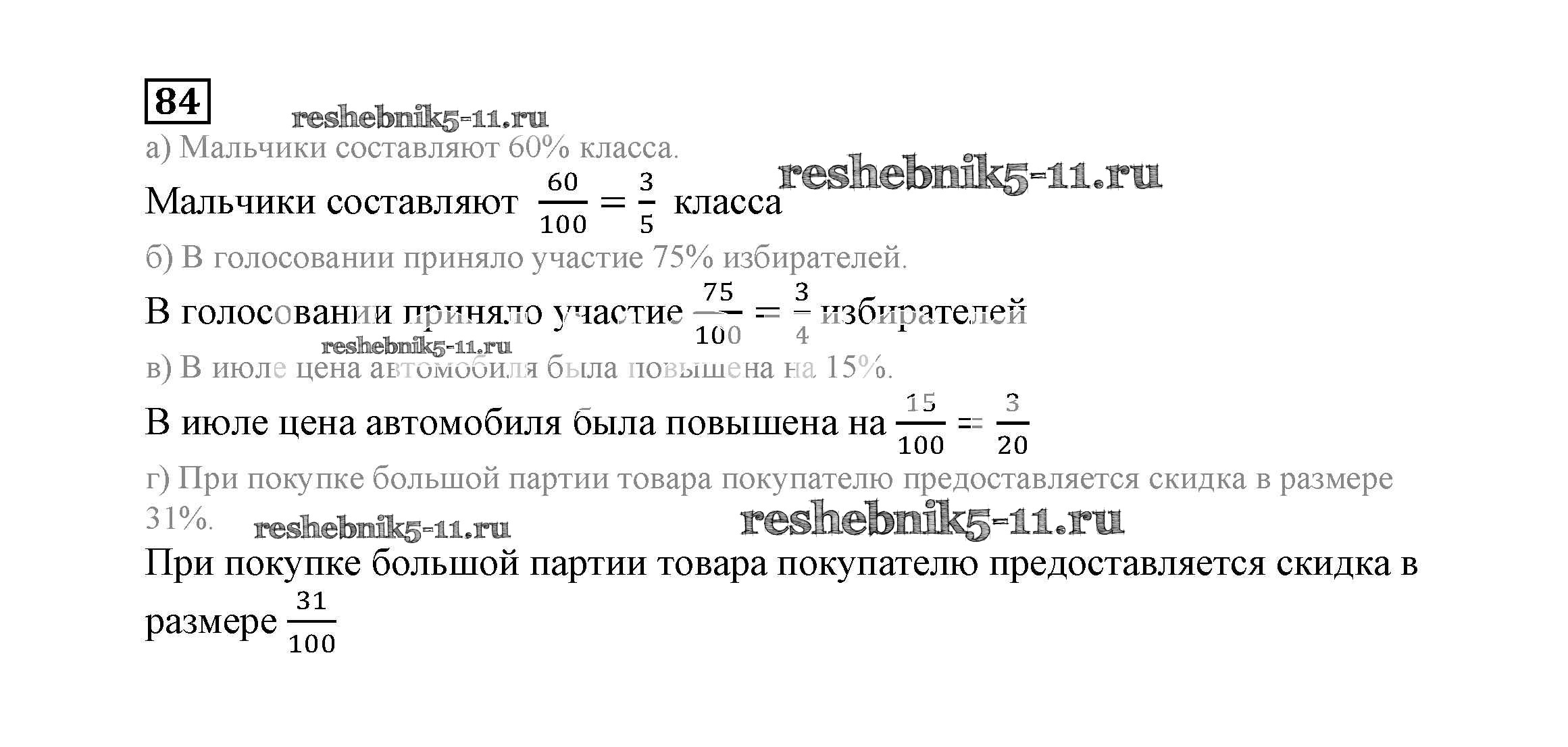 Готовая домашняя работа с ответами по Математике за 6 класс Дорофеев, Шарыгин, Суворова Учебник Академический школьный учебник Просвещение 2014 ФГОС - Упражнения 84