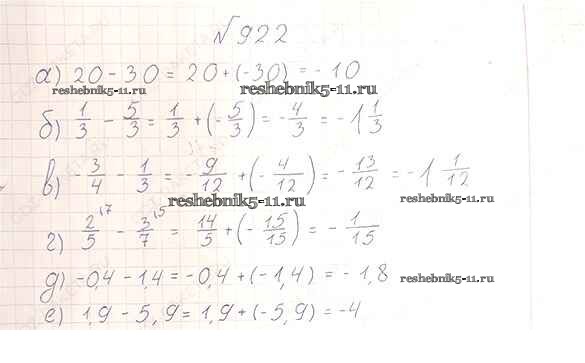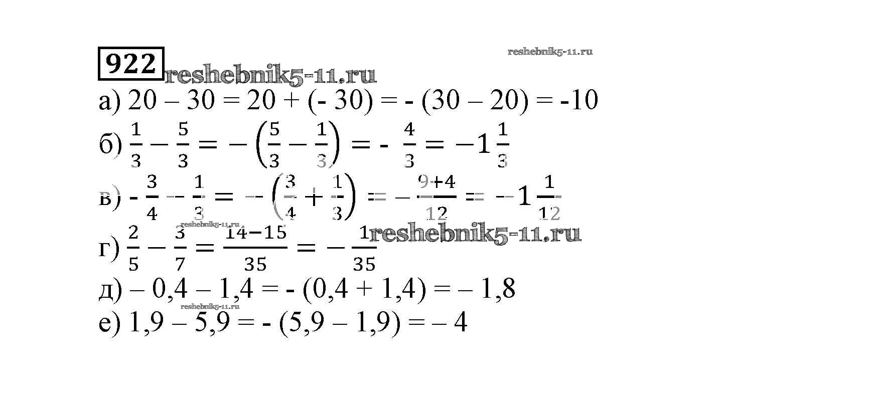 Готовая домашняя работа с ответами по Математике за 6 класс Дорофеев, Шарыгин, Суворова Учебник Академический школьный учебник Просвещение 2014 ФГОС - Упражнения 922