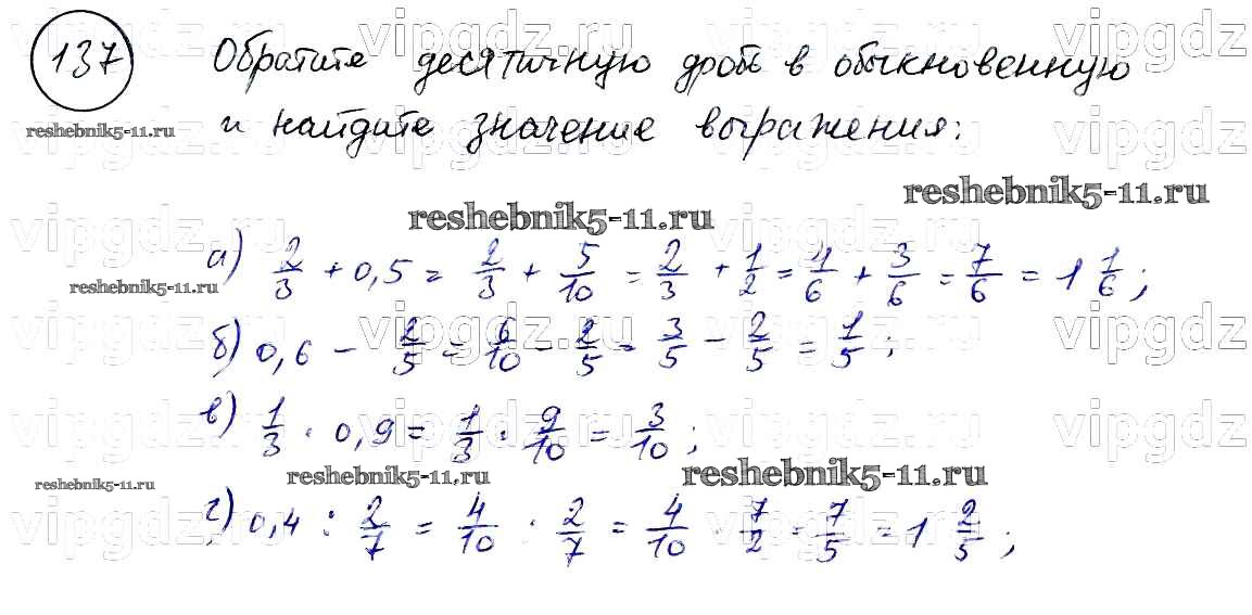 Готовая домашняя работа с ответами по Математике за 6 класс Бунимович, Кузнецова, Минаева Учебник Сферы Просвещение 2014 ФГОС - Упражнения 137
