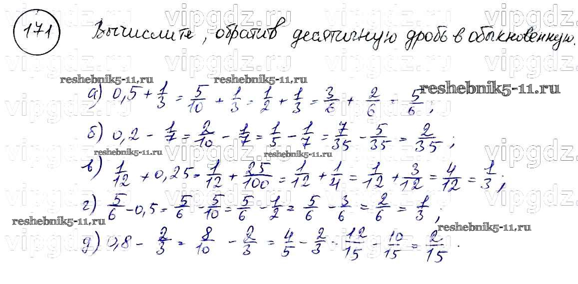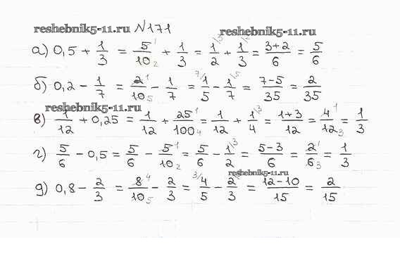 Готовая домашняя работа с ответами по Математике за 6 класс Бунимович, Кузнецова, Минаева Учебник Сферы Просвещение 2014 ФГОС - Упражнения 171