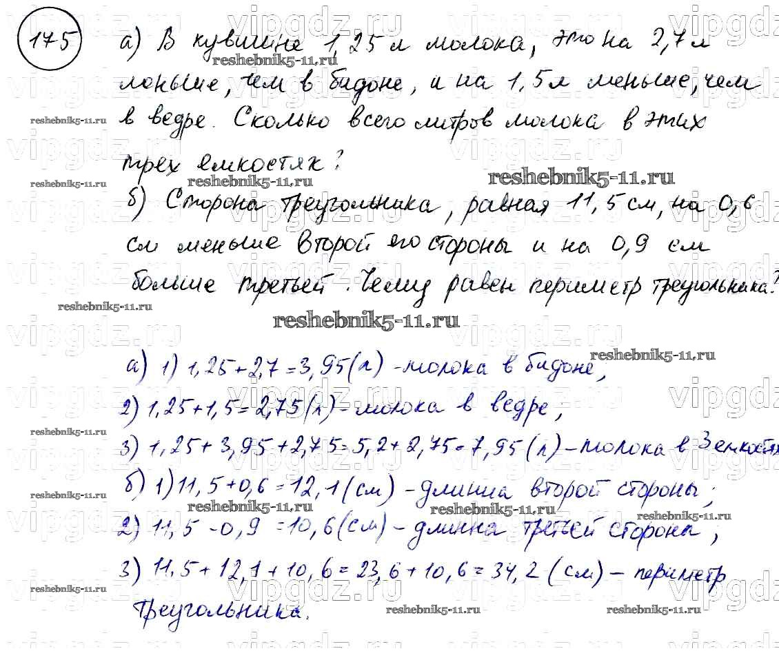 Готовая домашняя работа с ответами по Математике за 6 класс Бунимович, Кузнецова, Минаева Учебник Сферы Просвещение 2014 ФГОС - Упражнения 175