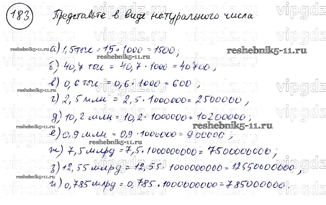 Готовая домашняя работа с ответами по Математике за 6 класс Бунимович, Кузнецова, Минаева Учебник Сферы Просвещение 2014 ФГОС - Упражнения 183