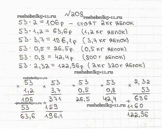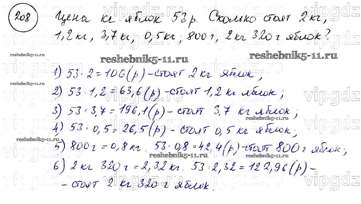 Готовая домашняя работа с ответами по Математике за 6 класс Бунимович, Кузнецова, Минаева Учебник Сферы Просвещение 2014 ФГОС - Упражнения 208