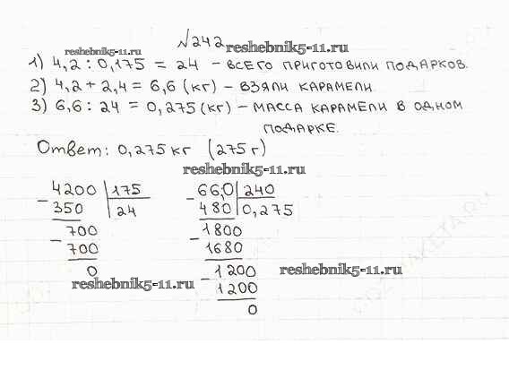 Готовая домашняя работа с ответами по Математике за 6 класс Бунимович, Кузнецова, Минаева Учебник Сферы Просвещение 2014 ФГОС - Упражнения 242