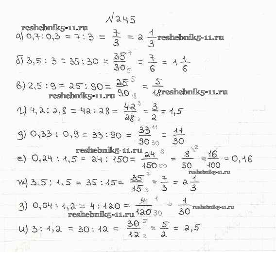Готовая домашняя работа с ответами по Математике за 6 класс Бунимович, Кузнецова, Минаева Учебник Сферы Просвещение 2014 ФГОС - Упражнения 245