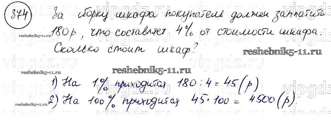 Готовая домашняя работа с ответами по Математике за 6 класс Бунимович, Кузнецова, Минаева Учебник Сферы Просвещение 2014 ФГОС - Упражнения 374