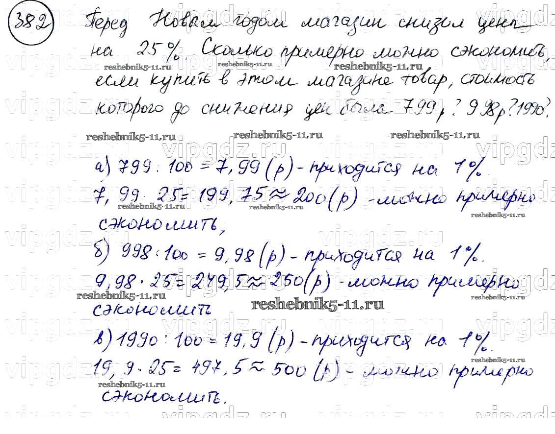 Готовая домашняя работа с ответами по Математике за 6 класс Бунимович, Кузнецова, Минаева Учебник Сферы Просвещение 2014 ФГОС - Упражнения 382