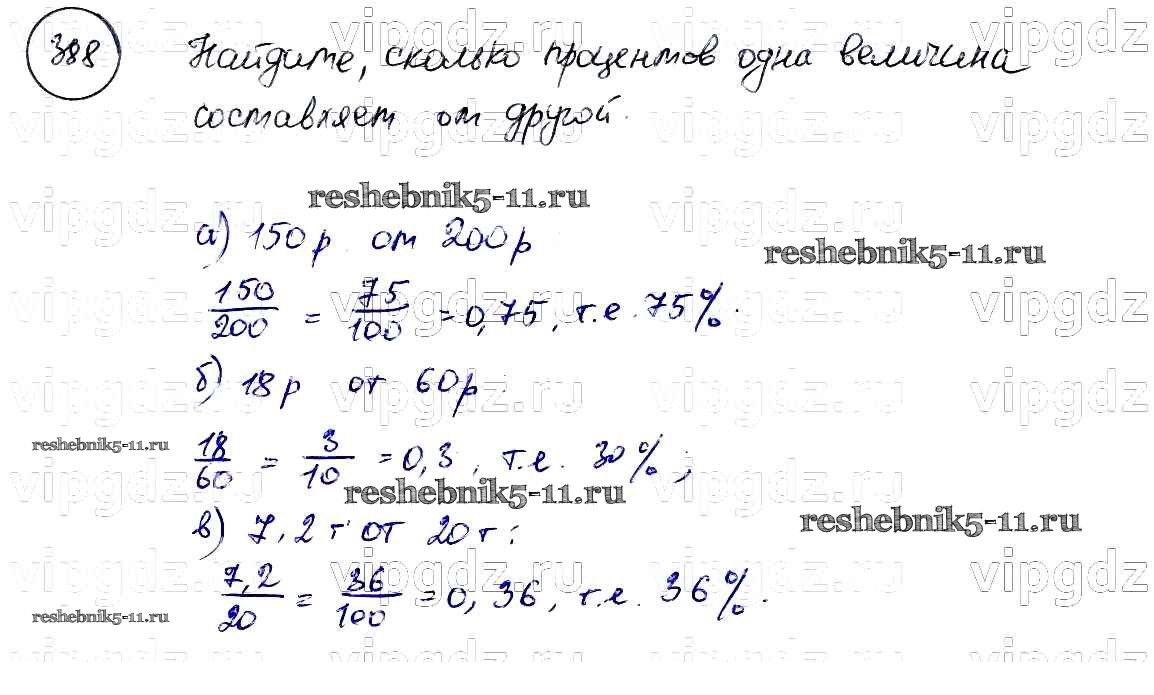 Готовая домашняя работа с ответами по Математике за 6 класс Бунимович, Кузнецова, Минаева Учебник Сферы Просвещение 2014 ФГОС - Упражнения 388