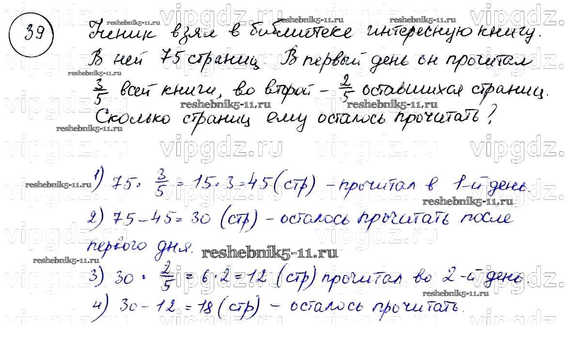 Готовая домашняя работа с ответами по Математике за 6 класс Бунимович, Кузнецова, Минаева Учебник Сферы Просвещение 2014 ФГОС - Упражнения 39