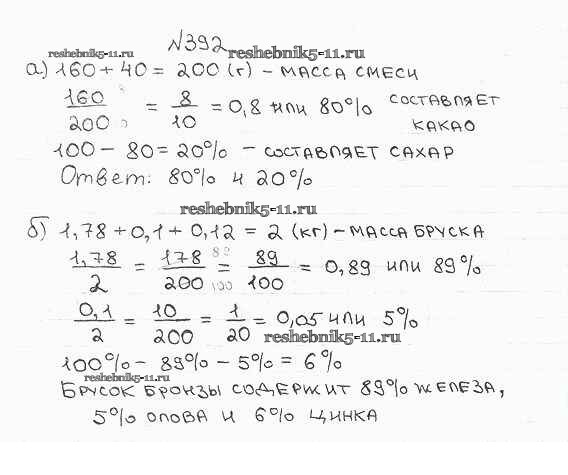 Готовая домашняя работа с ответами по Математике за 6 класс Бунимович, Кузнецова, Минаева Учебник Сферы Просвещение 2014 ФГОС - Упражнения 392