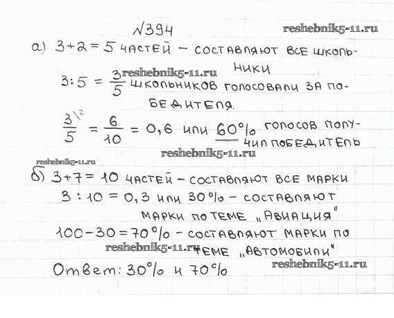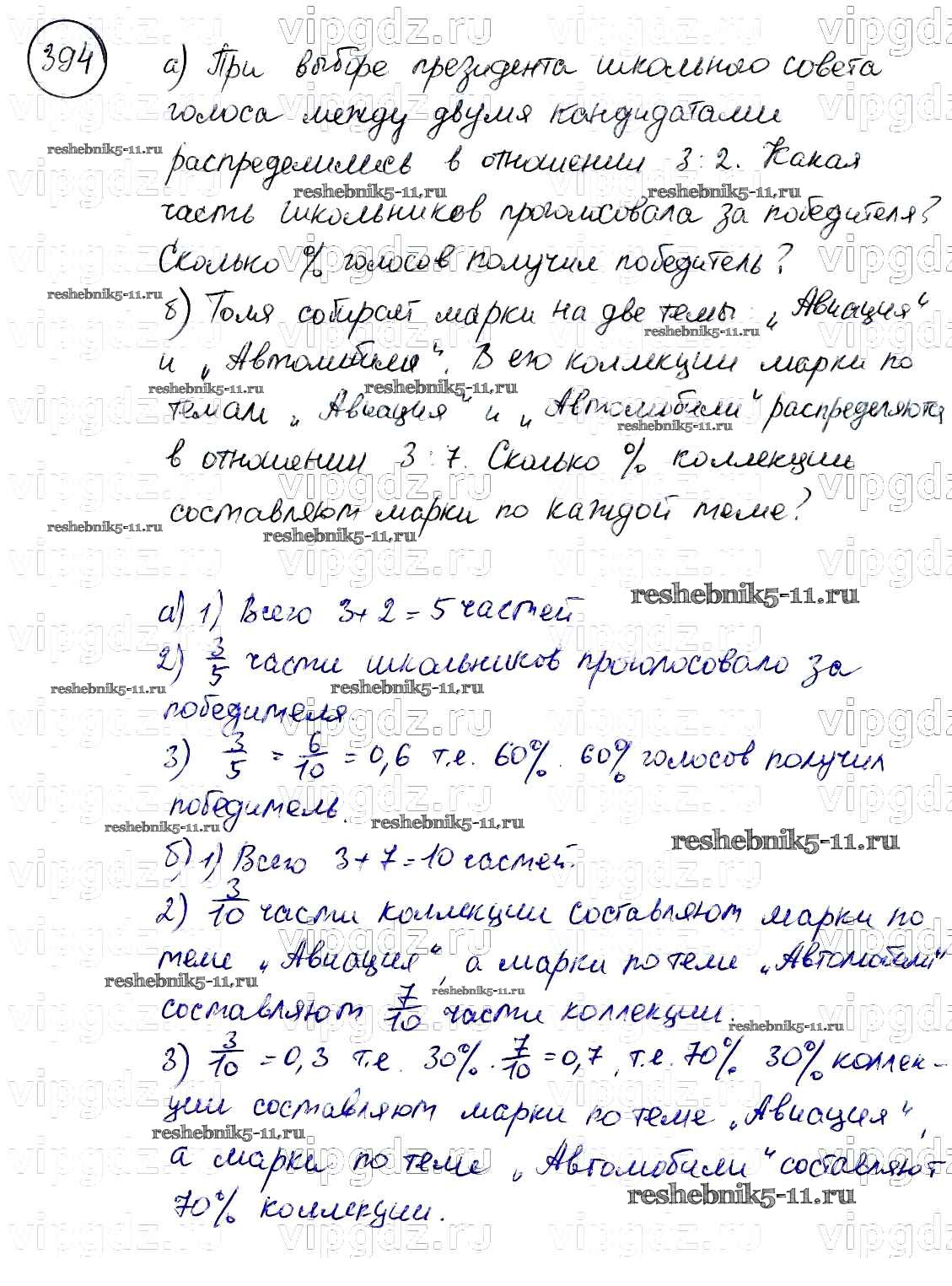 Готовая домашняя работа с ответами по Математике за 6 класс Бунимович, Кузнецова, Минаева Учебник Сферы Просвещение 2014 ФГОС - Упражнения 394