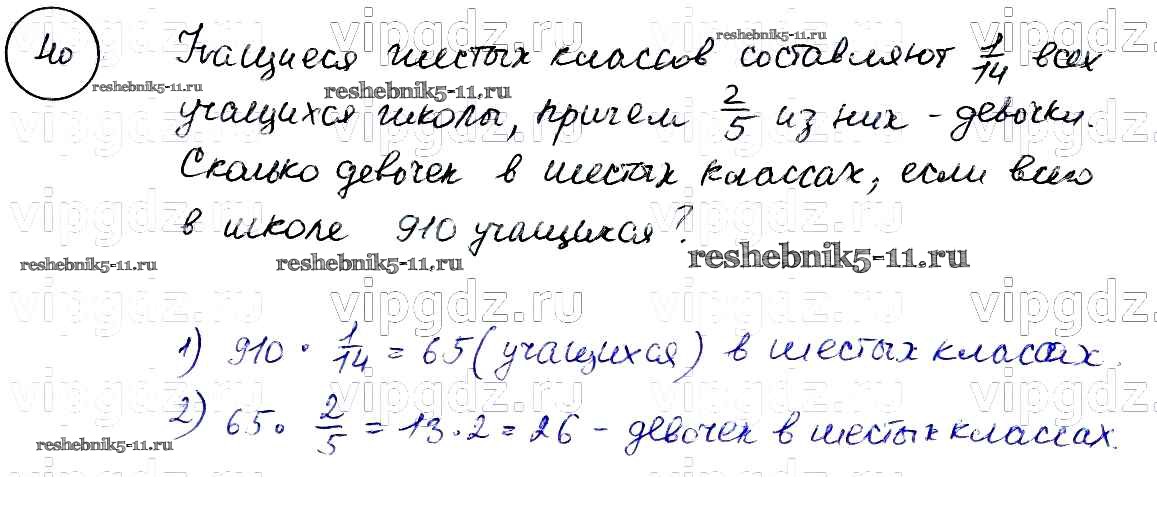 Готовая домашняя работа с ответами по Математике за 6 класс Бунимович, Кузнецова, Минаева Учебник Сферы Просвещение 2014 ФГОС - Упражнения 40