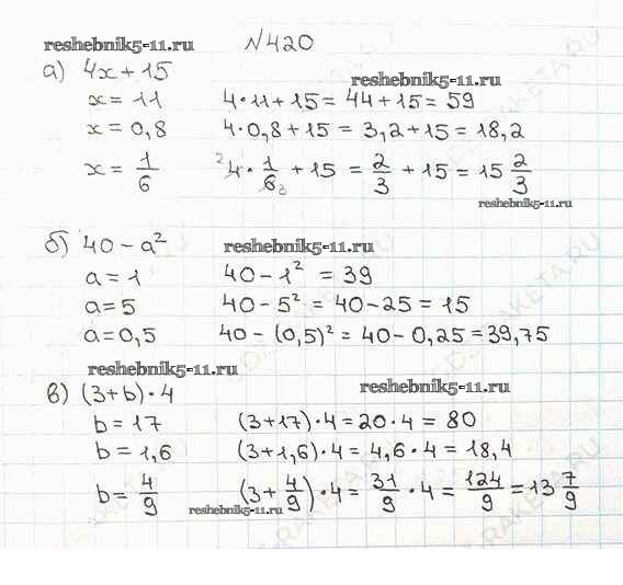 Готовая домашняя работа с ответами по Математике за 6 класс Бунимович, Кузнецова, Минаева Учебник Сферы Просвещение 2014 ФГОС - Упражнения 420