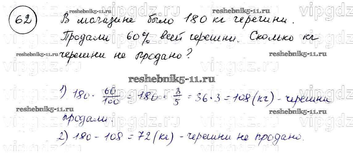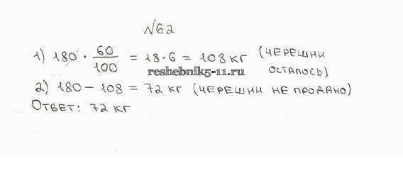Готовая домашняя работа с ответами по Математике за 6 класс Бунимович, Кузнецова, Минаева Учебник Сферы Просвещение 2014 ФГОС - Упражнения 62