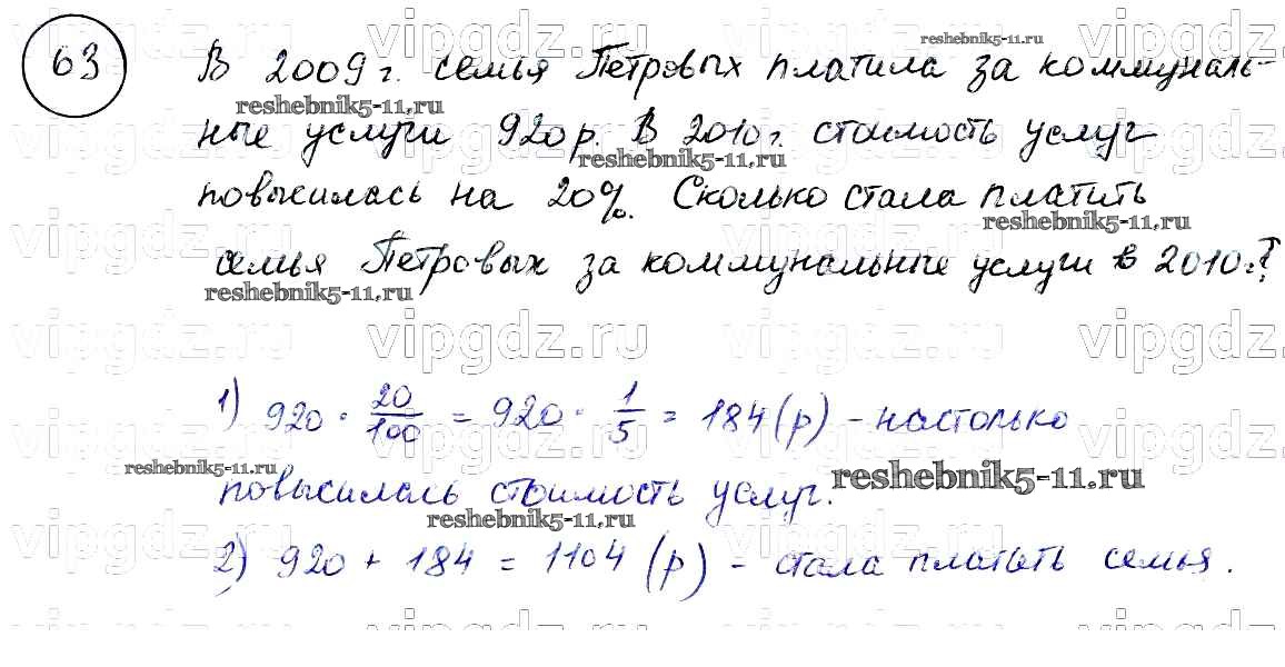 Готовая домашняя работа с ответами по Математике за 6 класс Бунимович, Кузнецова, Минаева Учебник Сферы Просвещение 2014 ФГОС - Упражнения 63