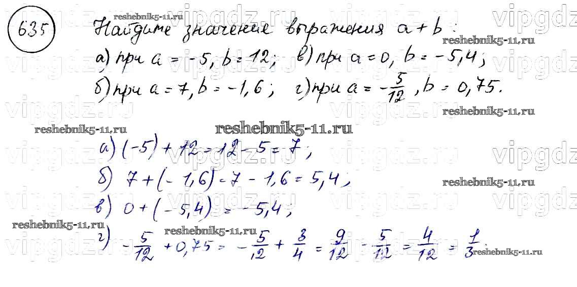 Готовая домашняя работа с ответами по Математике за 6 класс Бунимович, Кузнецова, Минаева Учебник Сферы Просвещение 2014 ФГОС - Упражнения 635