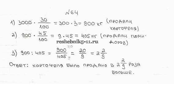 Готовая домашняя работа с ответами по Математике за 6 класс Бунимович, Кузнецова, Минаева Учебник Сферы Просвещение 2014 ФГОС - Упражнения 64