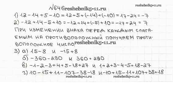 Готовая домашняя работа с ответами по Математике за 6 класс Бунимович, Кузнецова, Минаева Учебник Сферы Просвещение 2014 ФГОС - Упражнения 646