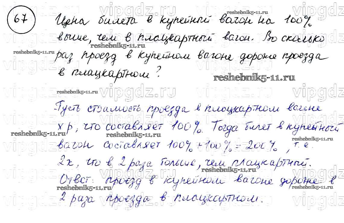 Готовая домашняя работа с ответами по Математике за 6 класс Бунимович, Кузнецова, Минаева Учебник Сферы Просвещение 2014 ФГОС - Упражнения 67