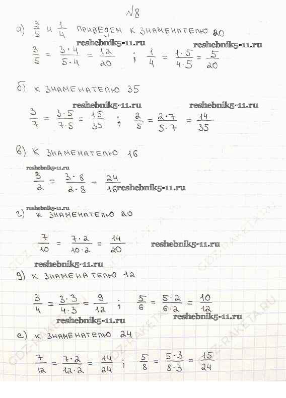 Готовая домашняя работа с ответами по Математике за 6 класс Бунимович, Кузнецова, Минаева Учебник Сферы Просвещение 2014 ФГОС - Упражнения 8