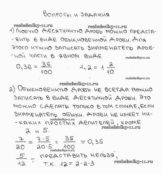 Готовая домашняя работа с ответами по Математике за 6 класс Бунимович, Кузнецова, Минаева Учебник Сферы Просвещение 2014 ФГОС - Вопросы и задания. Параграфы 10