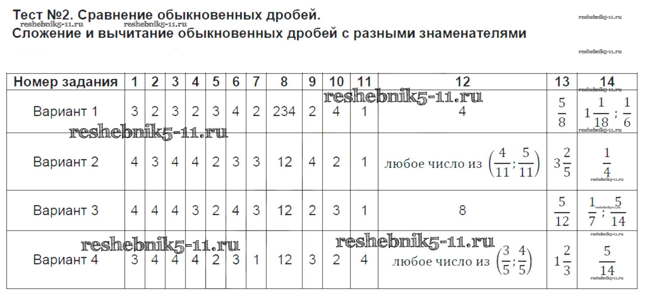 Готовая домашняя работа с ответами по Математике за 6 класс Ерина Тесты УМК Экзамен 2017 ФГОС - Тесты 2